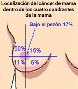 Es en esta localización que tiene lugar la mayoría de los tumores malignos de la mama.